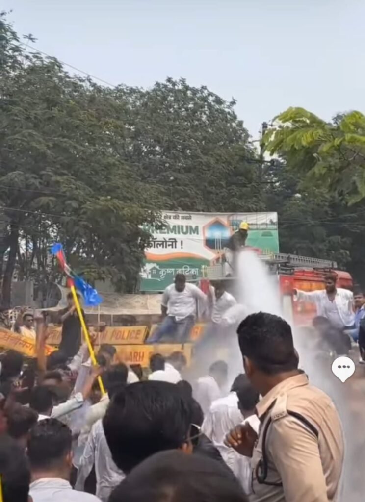 पुलिस ने किया बल प्रयोग, चला वॉटर कैनन