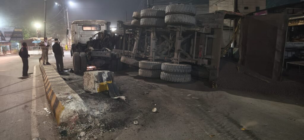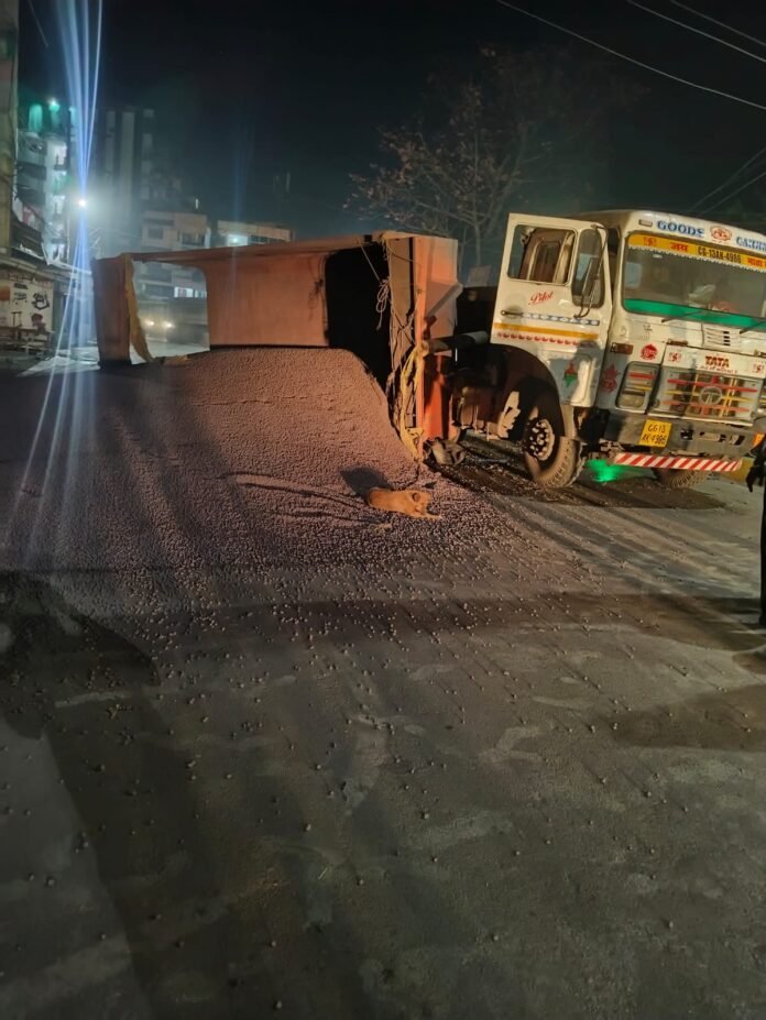 🚨 देर रात चक्रधरनगर चौंक पर पल्टी आयरन गोली ओव्हर लोड ट्रेलर वाहन, चक्रधरनगर पुलिस की त्वरित कार्रवाई, रात में ही मार्ग से हटवाया गया बिखरा आयरन पेलेट
