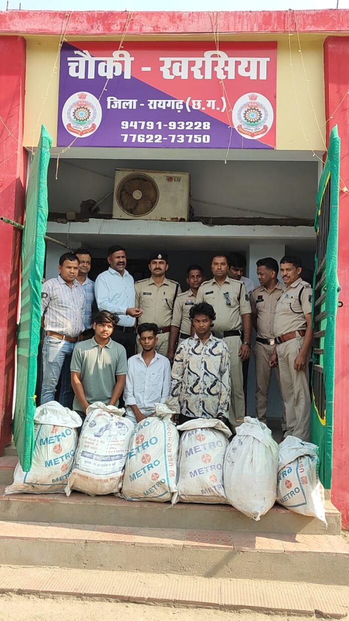 पुलिस को मुखबिर से सूचना मिली थी कि ओडिशा से तीन युवक बड़े-बड़े बैग में गांजा लेकर निकले हैं। सूचना पर एसएसपी शशि मोहन द्वारा सड़क और रेल मार्ग से तस्करी की संभावना को देखते हुए सभी थानों और साइबर टीम को अलर्ट किया गया। इसी दौरान खरसिया रेलवे कॉलोनी के पास तीन संदिग्ध युवकों के बड़े बैग के साथ घूमने की सूचना मिली, जो संभवतः ग्राहकों की तलाश में थे।
